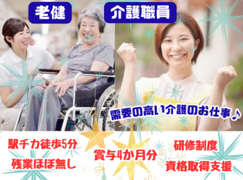 正社員【名古屋市南区】老健の介護職★賞与 3.60ヶ月分の正社員★残業少なめ★手当充実★