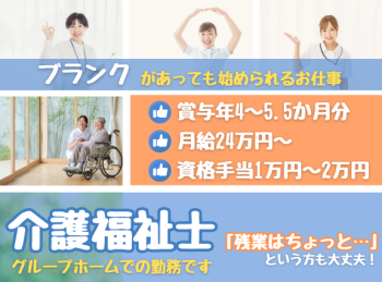 正社員【名古屋市南区】サ高住・介護職員・正社員賞与4か月分/年月残業10時間程夜勤手当1万円研修あり