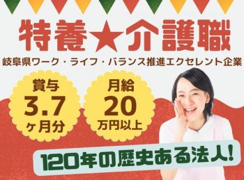 正社員【岐阜市】老健の介護福祉士★賞与3カ月分の正社員★3歳年度末までの託児所あり★年間休日122日★