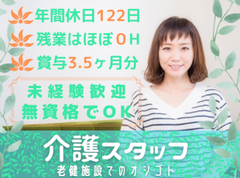 | 休日・休暇 | ★★年間休日111日 ★★ ◎月8~10日休み(シフトによる) ◎年次有給休暇(法定通り) ◎慶弔休暇(結婚休暇連続5日間など就業規則による) ◎産休育休(法定通り取得可。女性職員の産休・育休の取得率100%) ◎介護・看護休暇(規定の通り取得可) |