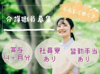 | 勤務先 | 特別養護老人ホーム 笑美の里 ※基本転勤なし(当社の定める範囲内で変更あり) |
