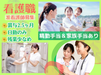 | 求める人材 | 准看護師・看護師の資格のある方 ※未経験・ブランク可 歓迎要件 高齢者の疾病、特性をよく理解している方歓迎 |