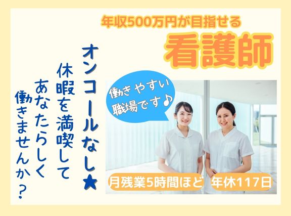 | 勤務時間 | 【夜勤】20:00~翌8:00 / 【早番】6:00~15:00 / 【遅番】12:00~21:00 残業時間(月): 5時間程 |
