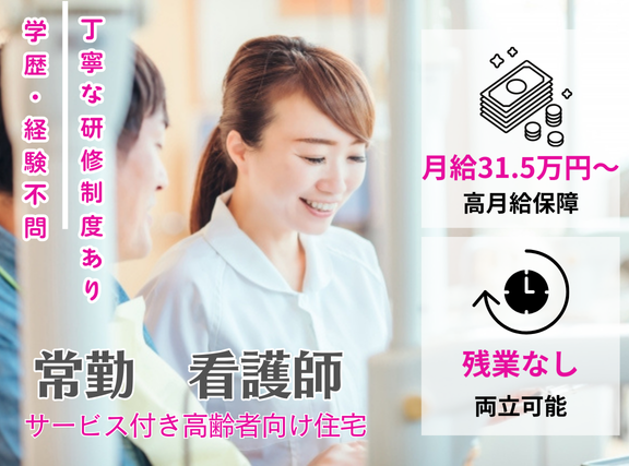 | 仕事内容 | ◆サービス付き高齢者向け住宅「いちる瑞穂」にて、看護師業務を お願いします。 ・バイタルチェック ・服薬管理、健康管理 ・身体介助 ・看護記録 ・健康診断、予防接種等の実施補助 ・制服貸与あり ■変更範囲:会社の定める業務 |