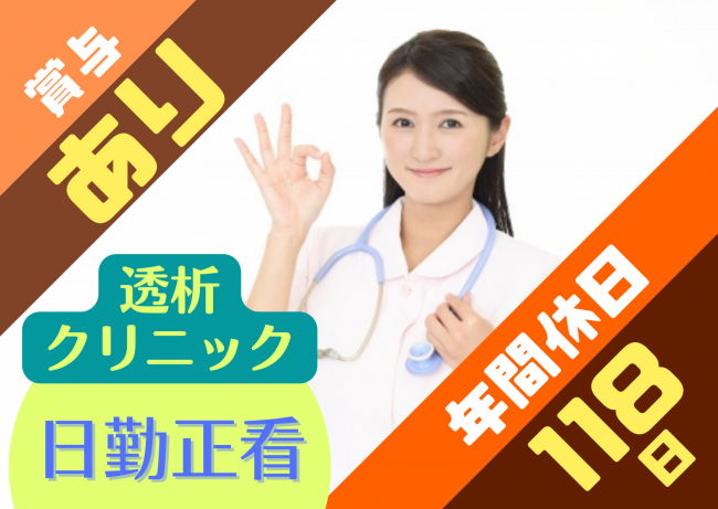 【小牧市】透析クリニック・看護師・正社員★年休118日★月給32万円から★賞与昇給あり★日曜+1日休み★有給消化率100%★