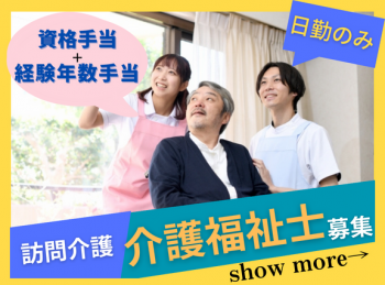 | 仕事内容 | 従来型小規模特別養護老人ホーム(29床)、ショートステイ(10床)での介護業務です。 食事・排泄・入浴介助のほか、年間行事企画、外出支援などもあります。小規模な施設なので利用者との関わりもしっかりとれます。 ■変更範囲:会社の定める業務 |