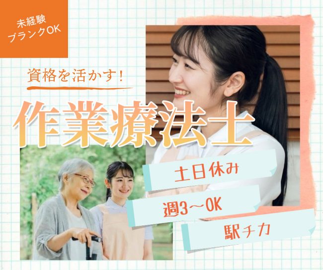 | 求める人材 | 学歴 不問 必要な免許・資格 【必須】作業療法士・普通自動車免許 |