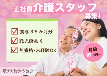 正社員【名古屋市港区】特養|介護職|正社員|★年休126日★残業月5時間以下★賞与3.5か月分★