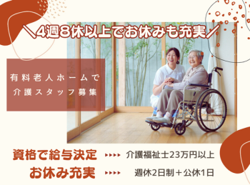 ※残業月5時間以内ブランクOKフルタイムの仕事ボーナス・賞与あり交通費支給昇給あり有資格者歓迎無資格OK研修あり経験者優遇資格取得支援制度週4日以上長期 -